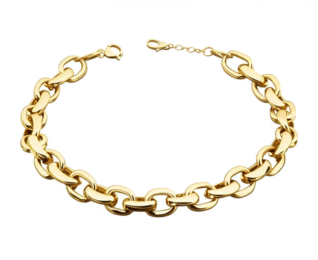 Add a touch of glam and confidence with the Zovellea Bold Gold Link Chain Bracelet. Featuring oversized interlocking links in a radiant gold polish, this piece blends luxury with modern edge ideal for stacking or standing out on its own.