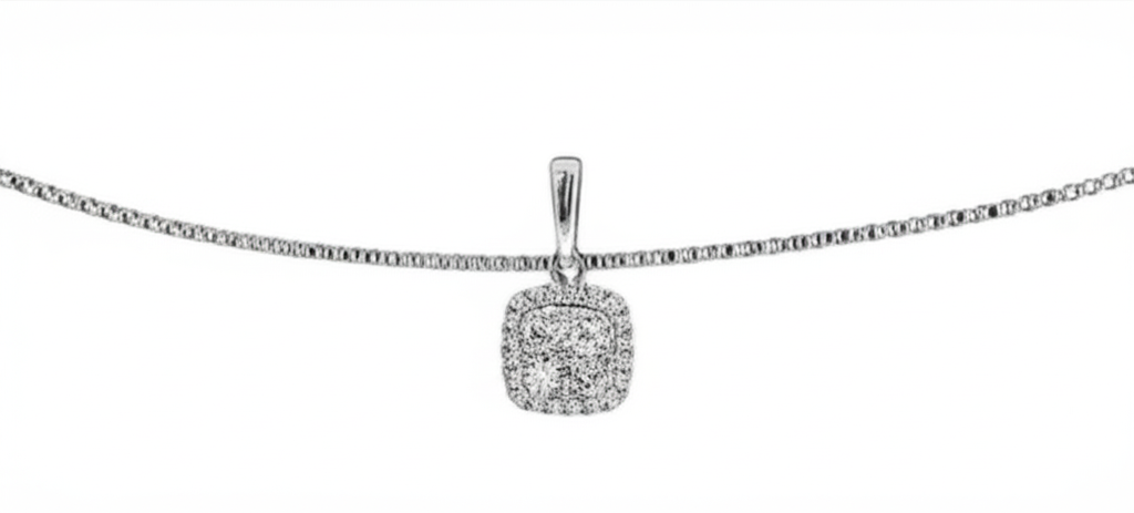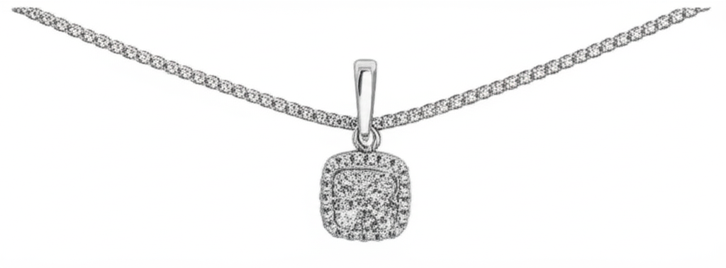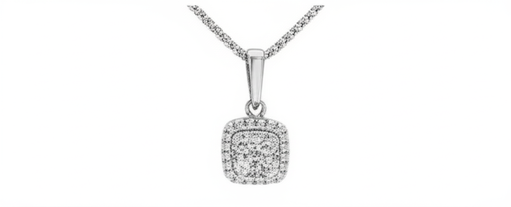 A statement of pure sophistication the Zovellea Cushion-Cut Pavé Pendant Necklace is designed to captivate. Set in lustrous sterling silver, the pendant features a cushion-shaped frame encrusted with brilliant pavé-set stones that shimmer from every angle. Suspended from a sleek box chain, this piece is perfect for elevating your everyday look or adding sparkle to an evening ensemble.