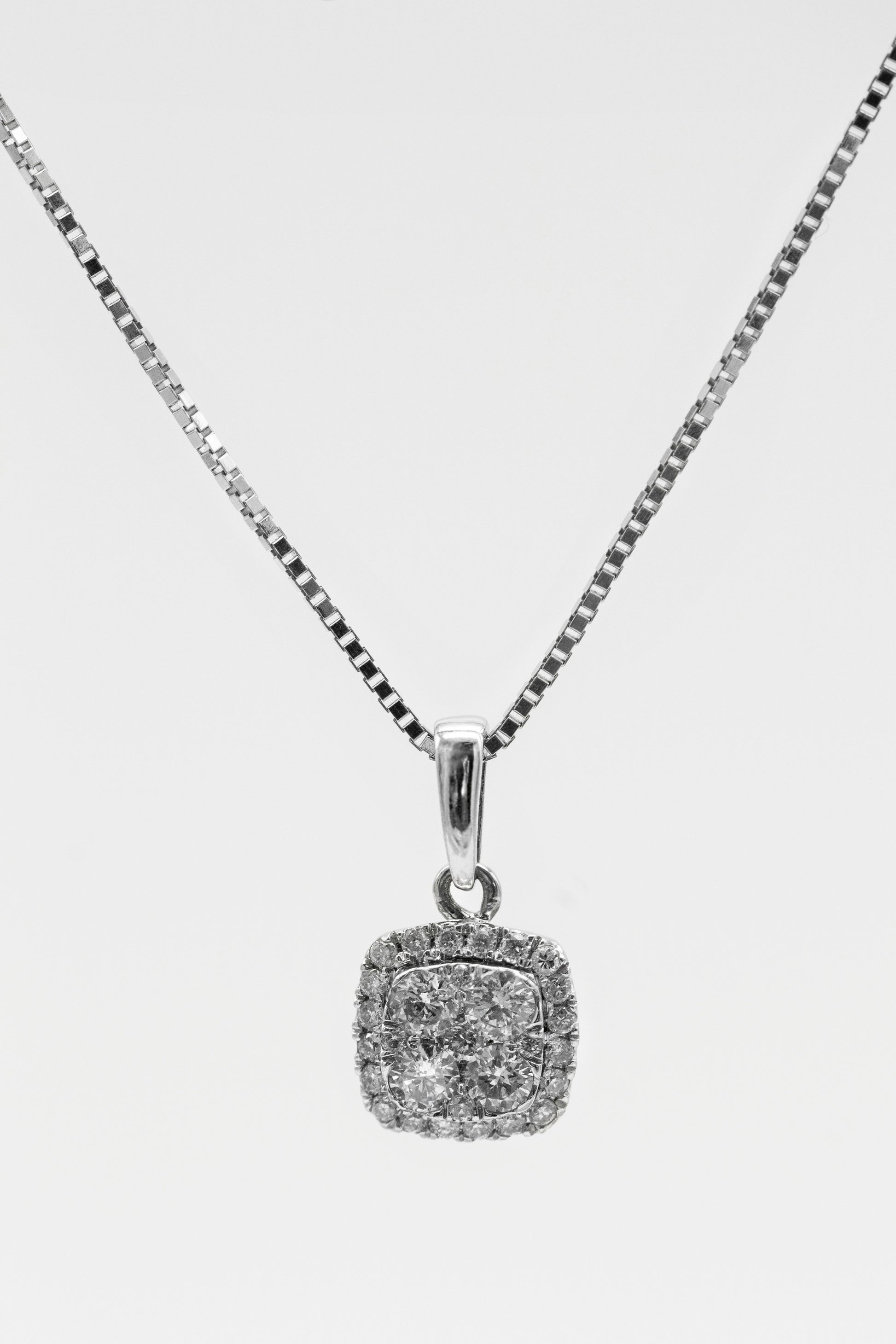 Zovellea Cushion-Cut Pavé Pendant Necklace in Sterling Silver